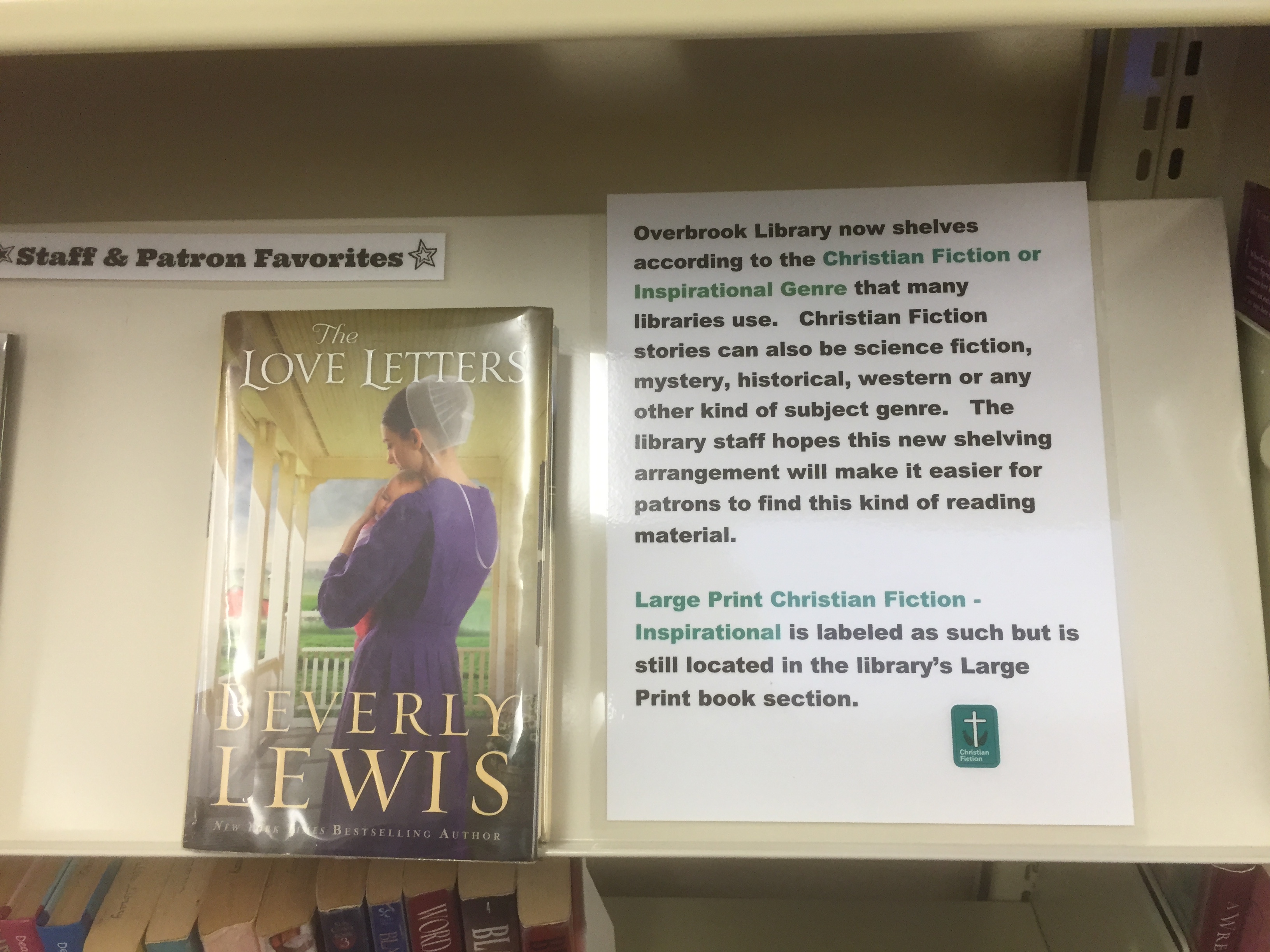 The Overbrook Book Club meets at the Overbrook Library the third Tuesday of the month at 7:00 PM. All are welcome to attend and enjoy the fellowship and refreshments!